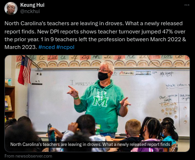 And that report focuses on March of 2022 to March of 2023. We are in April of 2024 and this teacher would not bet that trend has changed in North Carolina.