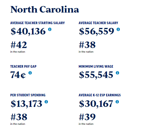 1 of 6 And Thousands Behind The National Average 8 May 2024 / caffeinatedrage North Carolina is one of 6 states that prohibits by law collective bargaining for K-12 public school educators. This is the overall report for North Carolina teacher salaries: Compare that to the national averages. Here are screenshots for all of the states: Share this: Click to email a link to a friend (Opens in new window) Email Click to print (Opens in new window) Print Tweet Click to share on Mastodon (Opens in new window) Mastodon Like Loading...