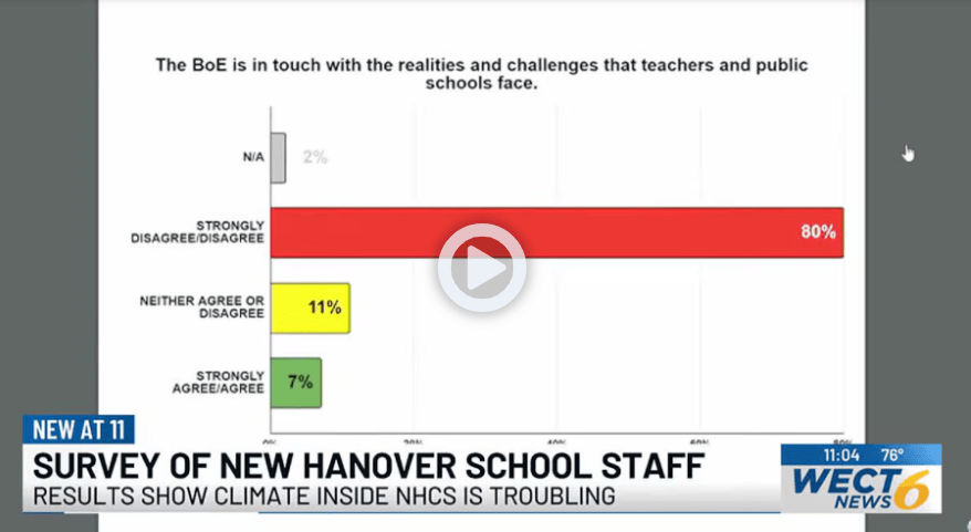 According to the survey, less than 10% of educators in New Hanover agree that the BOE is “in touch with the realities and challenges that teachers and pubic schools face.”