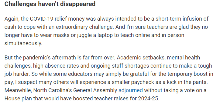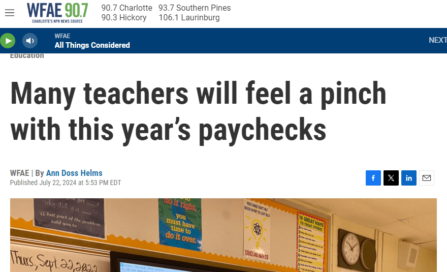 Meanwhile, North Carolina’s General Assembly adjourned without taking a vote on a House plan that would have boosted teacher raises for 2024-25.