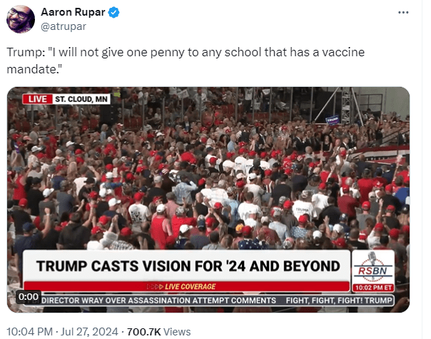 Wonder what Michele Morrow, who has been running on a platform as a nurse, says about this.