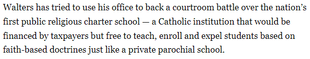 Walters is the face of the movement to overtly inject evangelical Christianity into public schools and he has others who wish to emulate his tactics and strict non-separation of church and state.