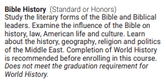Please understand that North Carolina already has a course available in its public high school registration offerings on Bible History.