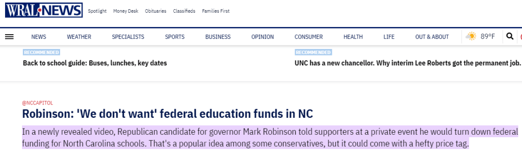 “That’s why we need to cut their money off. That’s why it’s important for us to be fiscally responsible with our education dollars, cut the waste and cut the bureaucracy so that we can do what we need to do without their help.”