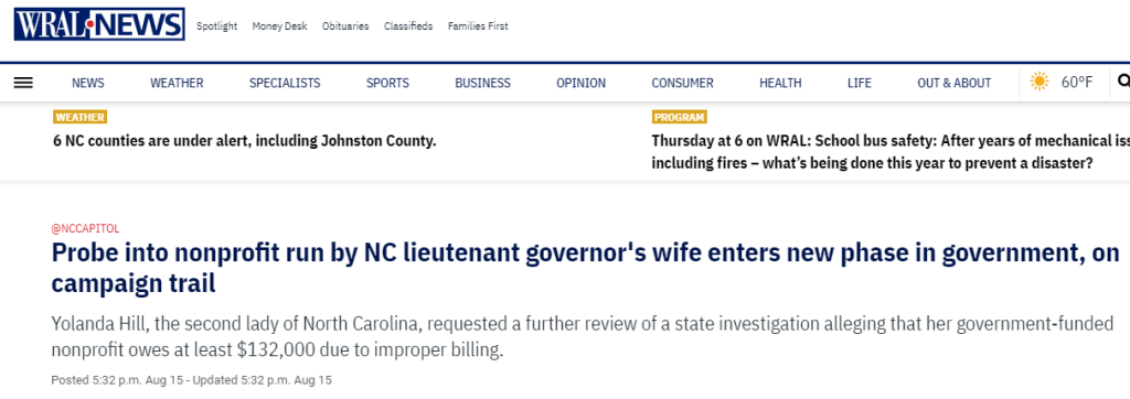 Hall said these cash withdrawals, in addition to the $2,374 reportedly spent at Lake Gaston Outfitters and a $4,500 reimbursement to Robinson’s wife Yolanda Hill for “campaign apparel,” could potentially violate elections law that bans the use of campaign funds for personal benefit.