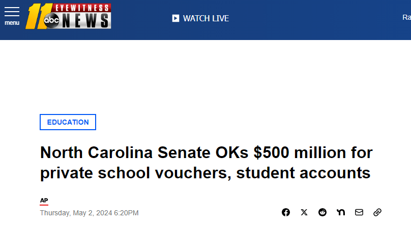 And the News & Observer had an editorial today that echoed those concerns as well as referring to recent reports that show vouchers not increasing academic outcomes for those students who received them.