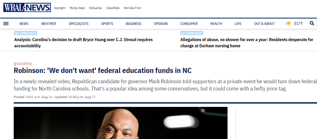 And then there is another person in NC who has been running on family values and pushing vouchers: Mark Robinson.