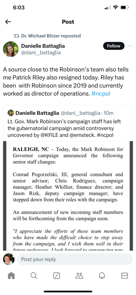 It is like Mark Robinson was reported to some sort of place that would investigate claims of improper behavior and in the us case he actually got caught.
