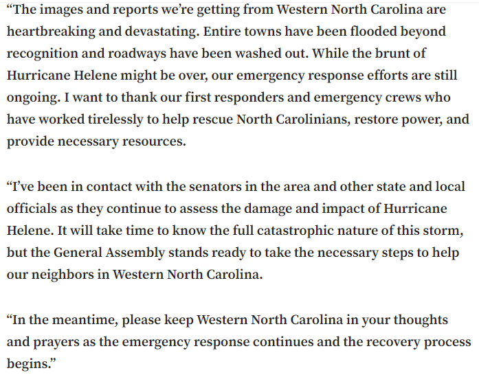 Looking at what the most powerful gerrymandered politician in the state released in response to the devastation of Hurricane Helene is a study in contrast when looking at words versus actions.