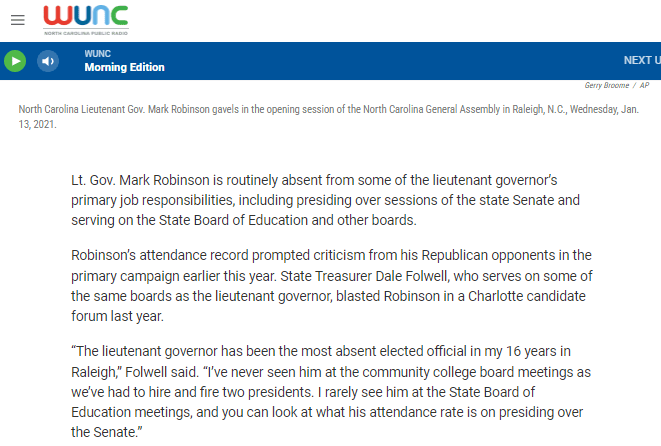 Here’s a man who rarely showed up for a state board of education meeting or a session of the General Assembly but went on speaking tours to belittle public school teachers and public education to run on culture war issues.