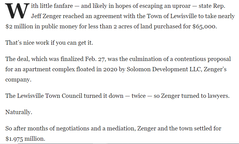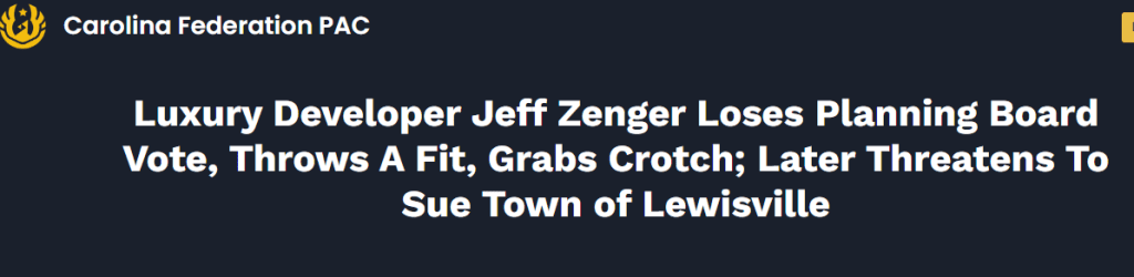 He planned to develop on that piece of land and was voted down. Can you guess which person on that Zoom meeting (remember it was the pandemic) was Jeff Zenger?