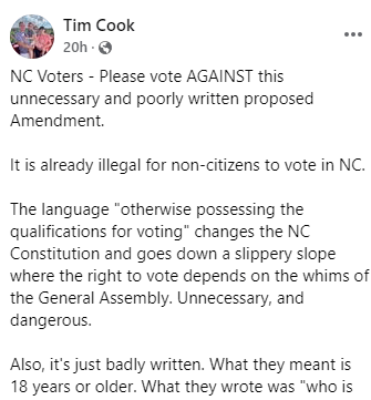 NC Voters – Please vote AGAINST this unnecessary and poorly written proposed Amendment.