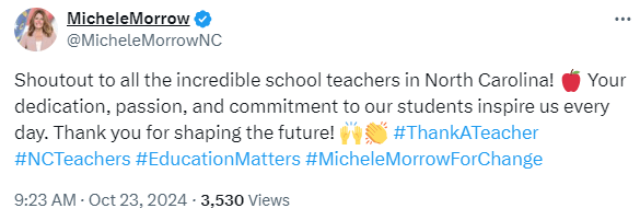 “Shoutout to all the incredible school teachers in North Carolina!“