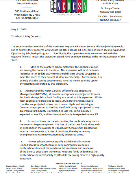 Vouchers would hurt rural county school systems most. In the late spring of 2023, 19 superintendents whose systems reside in 17 eastern rural counties wrote a letter asking that vouchers not be expanded.