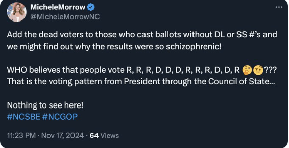 Maybe Michele forgot that North Carolina already has a recent history of having leaning for an “R” on a national level and a “D” for the governor’s mansion.