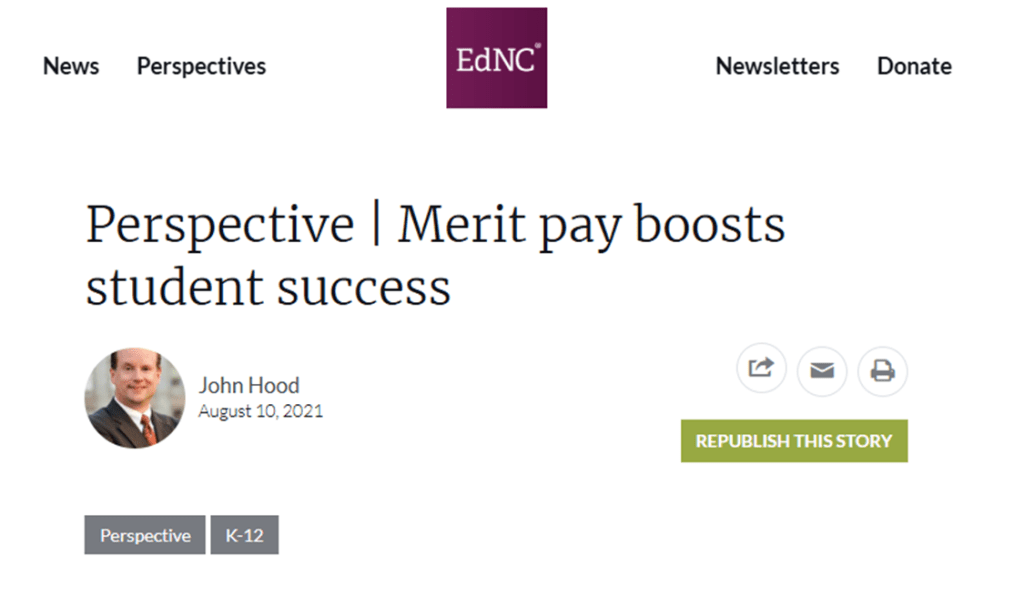 “But that’s not how the current leadership in Raleigh has been approaching the issue. They’ve junked forms of compensation that didn’t produce better instruction, such as the foolish practice of paying teachers to get largely irrelevant graduate degrees, while focusing legislative attention on starting salaries and pay raises for teachers in their early careers, which is when most improvement in teacher effectiveness occurs.