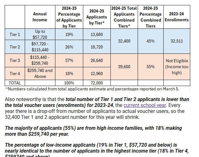 Here is the data from Public Schools First NC about the income levels of those who applied for a voucher in NC last school year after the income requirement was removed.