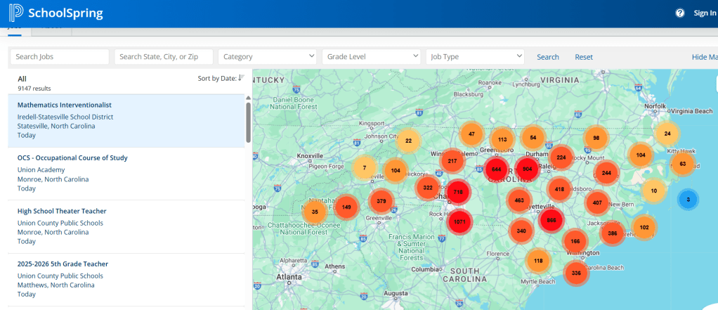 - Number of Vacancies in NC Schools (TeachNC)