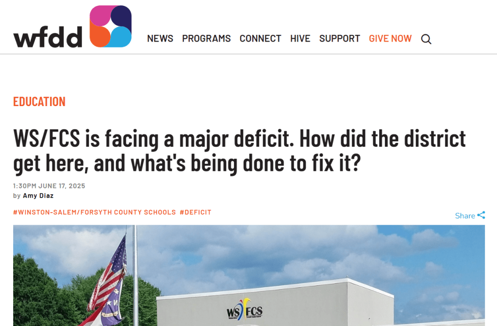 It’s about a seven and one-half minute listen, but Amy Diaz at WFDD does a good job of summarizing the financial deficits that have been racked WSFCS.