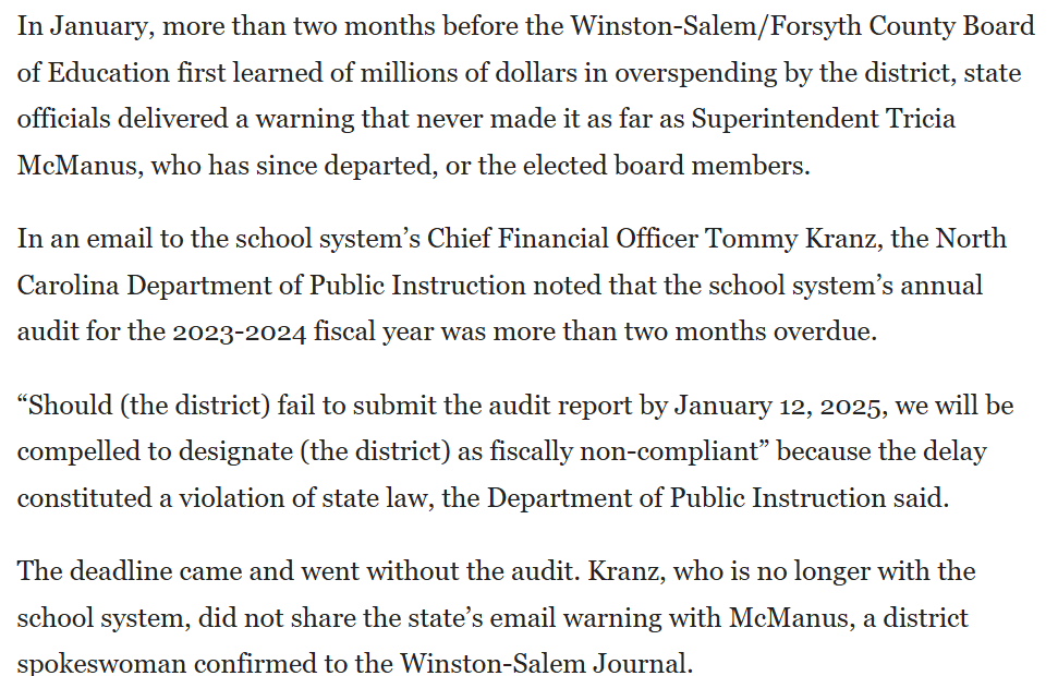 Also, posted yesterday, but printed in the Winston-Salem Journal today is more on the lack of communication on the audit within Central Office.