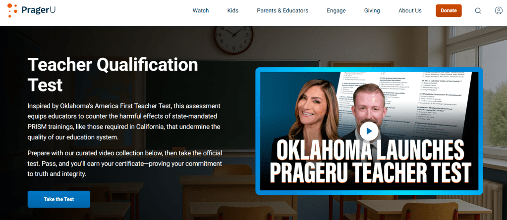 If you have caught wind of Oklahoma State Superintendent Ryan Walters’s latest public spectacle, then you are familiar with the Prager U “Teacher Integrity” Test.