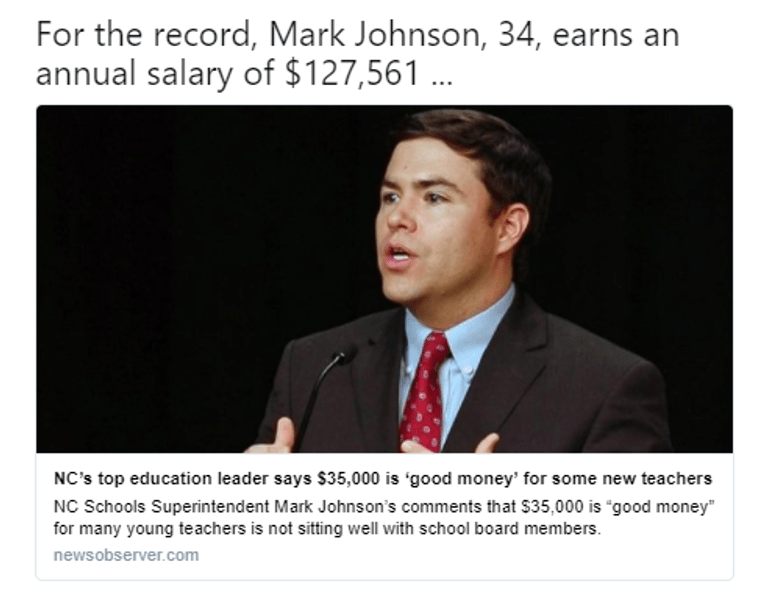 Remember when Mark Johnson talked about how the teacher starting salary in NC was really good?