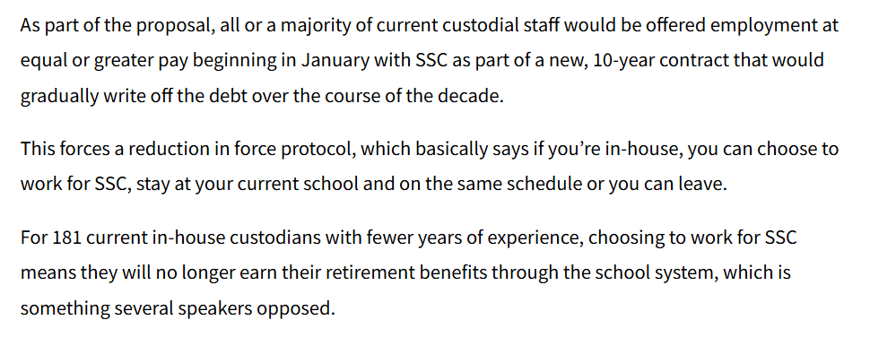 When custodians are treated as part of the school family and actually under the umbrella of state/local employment, that investment is paid back in multitudes. Schools are cleaner, safer, and custodial staffs are more stable.