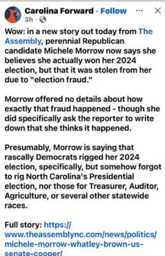 Michele Morrow Lost The State Super Race Because Of … “Fraud?” Mmmmm. 17 Feb 2026 / caffeinatedrage Here is a link to that story in The Assembly. Share this: Email a link to a friend (Opens in new window) Email Print (Opens in new window) Print Tweet Share on Mastodon (Opens in new window) Mastodon Like Loading...