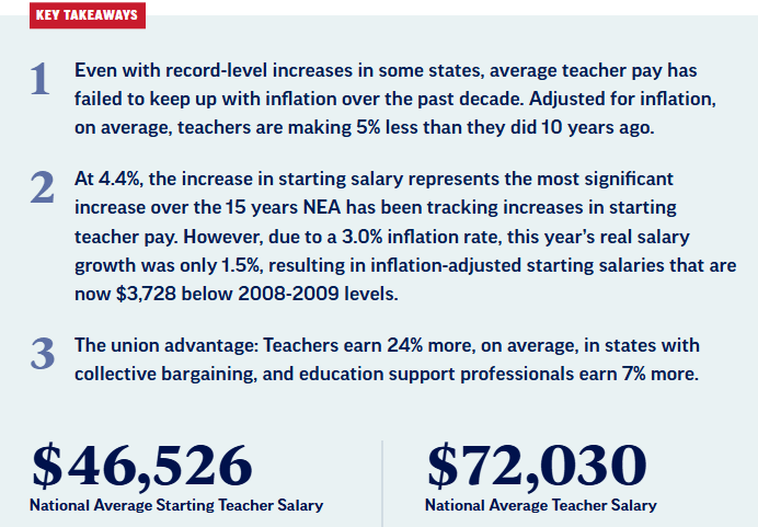 According to the last annual NEA Report on Educator Pay in 2025: