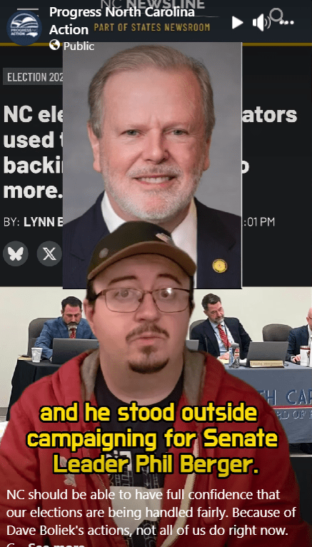 Who else oversees Rockingham’s Board of Elections? The State Board of Elections, whose members are appointed by State Auditor Dave Boliek – who Phil Berger put in the job, and who was campaigning with Phil Berger at the polls.