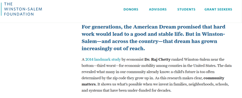 In the few times that school board members have confronted the public about the funding issues, they have mentioned that WSFCS must do more with less as other school systems have done so. With no specifics cited, it is worth noting that this school system resides in a locality that ranks low in social mobility and has a higher rate of free-and-reduced students than is average.